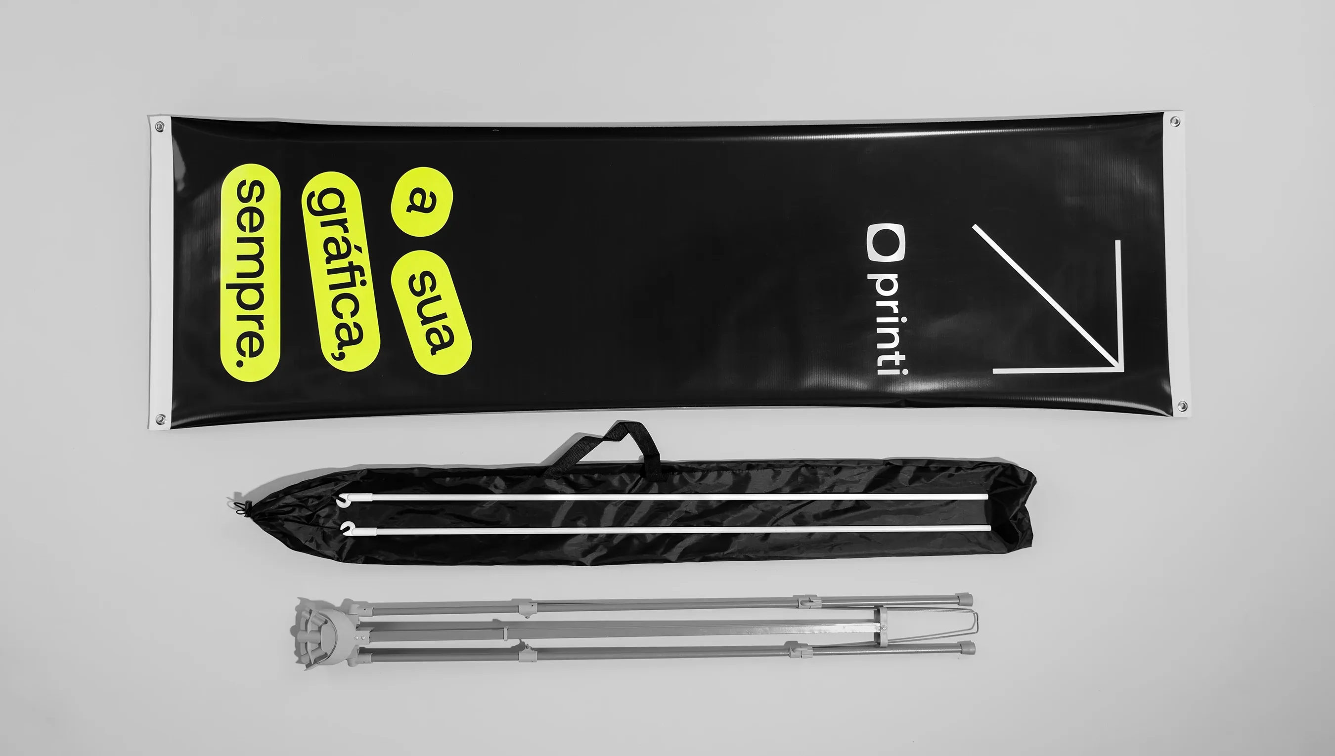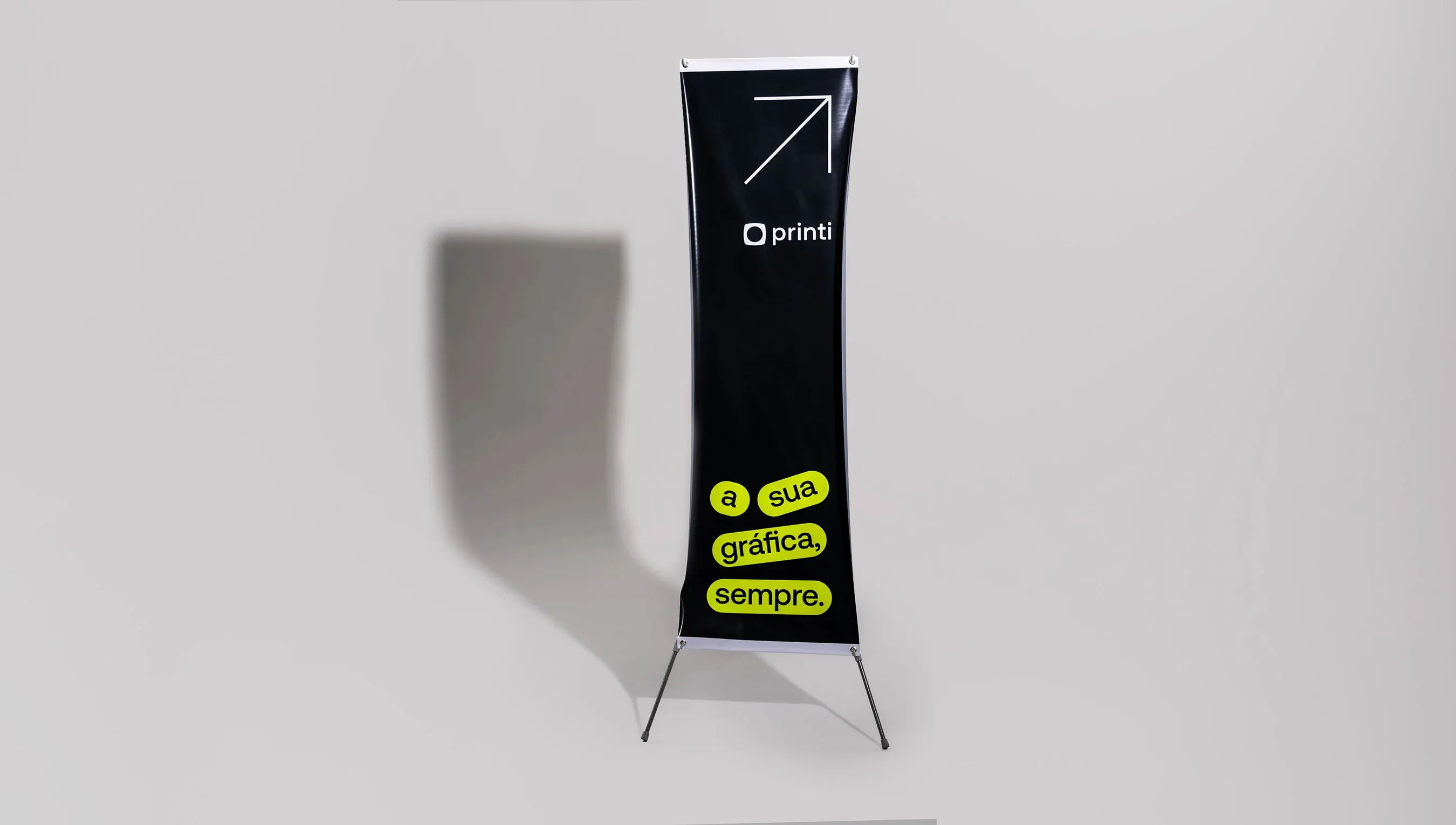 Banner X: versátil, fácil de transportar; ideal para eventos, promoções e ações internas; influente e atualizável.