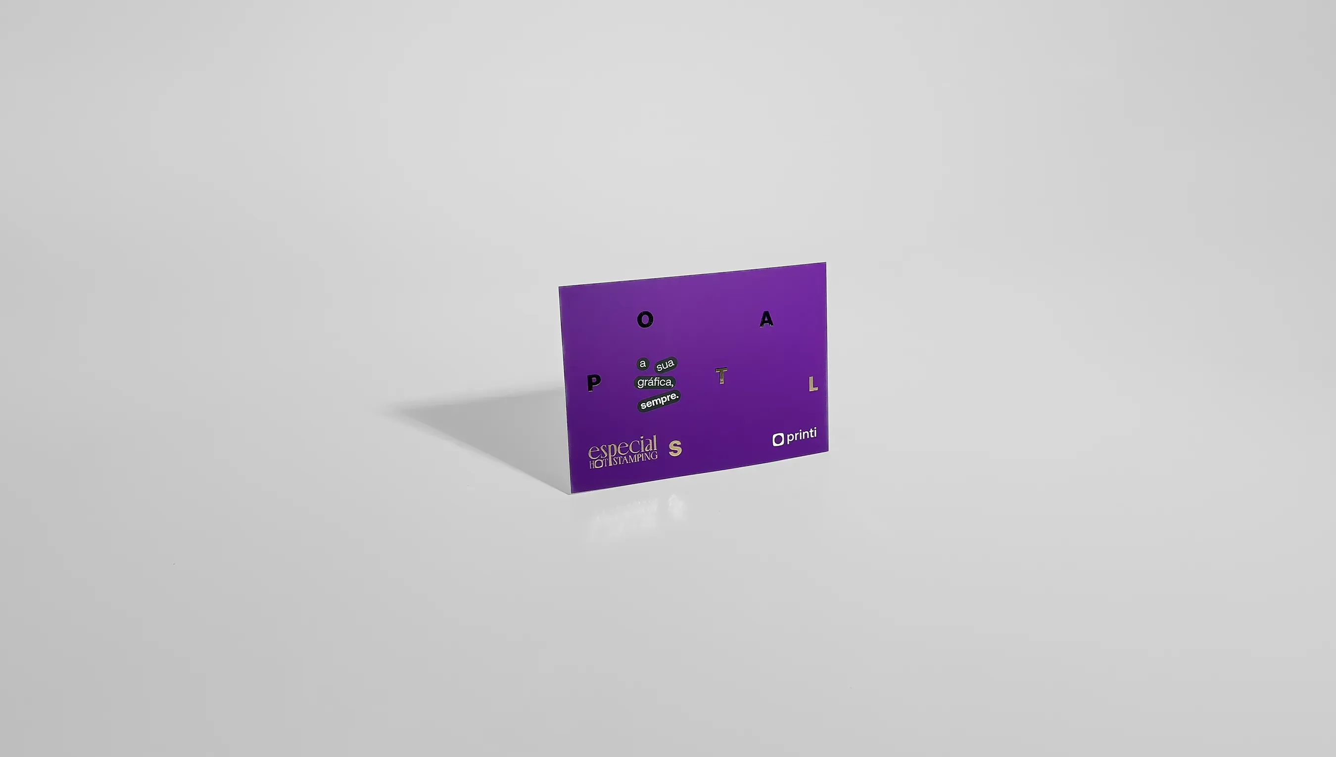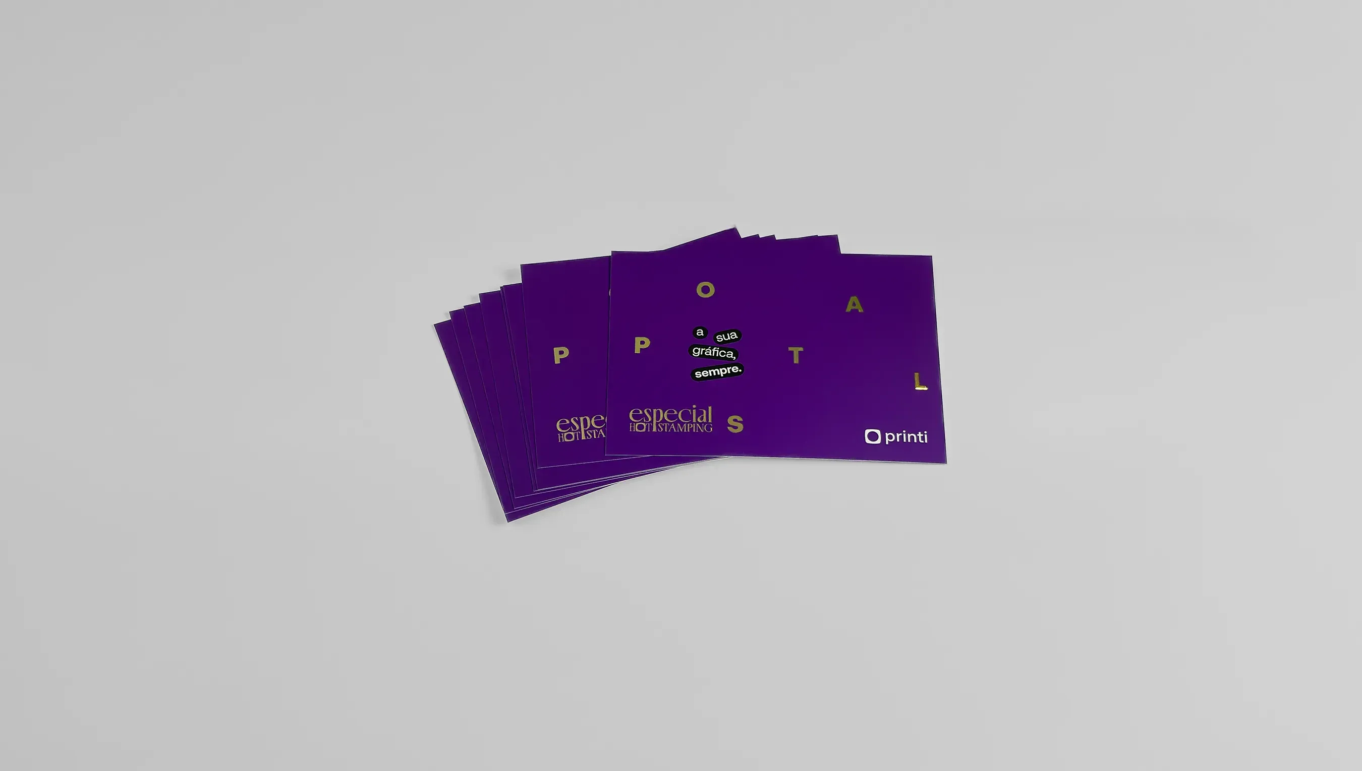 Cartões postais com acabamento hot stamping para comunicações corporativas, convites ou ações promocionais.