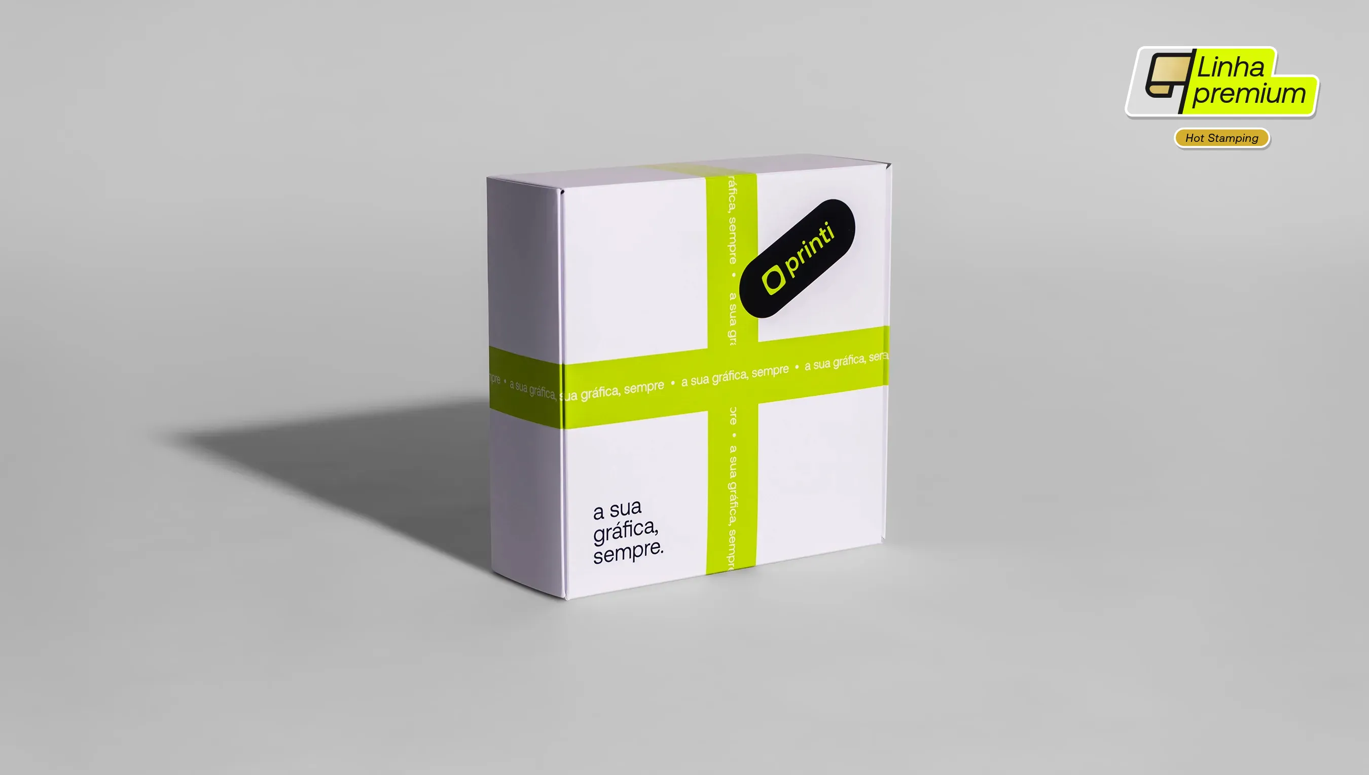Embalagens basculantes com detalhe em hot stamping, perfeitas para produtos sofisticados.