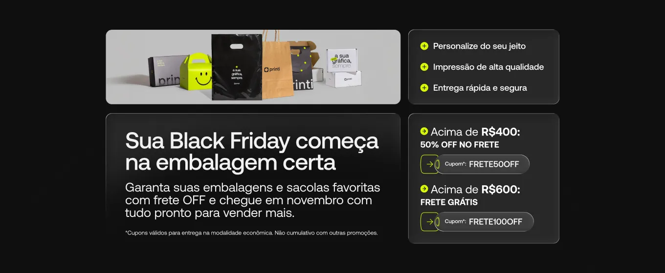 Escolher a Printi é optar por uma experiência completa, com soluções que atendem às necessidades específicas do seu negócio. Seja você um pequeno empresário ou uma grande corporação, estamos prontos para ser o seu parceiro de confiança em todas as suas demandas gráficas. Aqui, você encontra: variedade de produtos (ampla gama de opções personalizáveis, desde itens básicos até soluções premium), personalização total (cada detalhe é pensado para refletir a identidade da sua marca, com diversas opções de papel, cores, acabamentos e enobrecimentos), tecnologia de ponta (com um parque gráfico que é referência global, utilizamos as tecnologias mais avançadas para garantir que cada pedido tenha a mais alta qualidade), sustentabilidade (trabalhamos com papeis certificados e processos de produção que respeitam o meio ambiente), atendimento especializado (nossa equipe está pronta para te ajudar em todas as etapas, garantindo que seu pedido seja criado com cuidado e precisão).