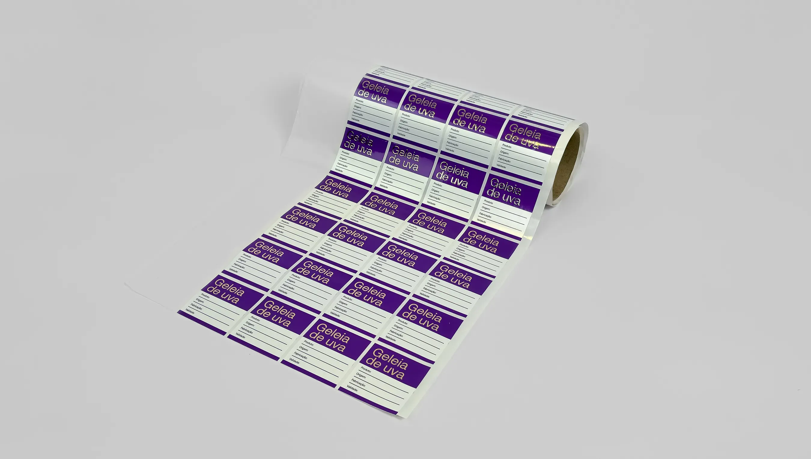 Etiquetas com acabamento em hot stamping, ideal para rótulos, identificação de produtos e embalagens promocionais.