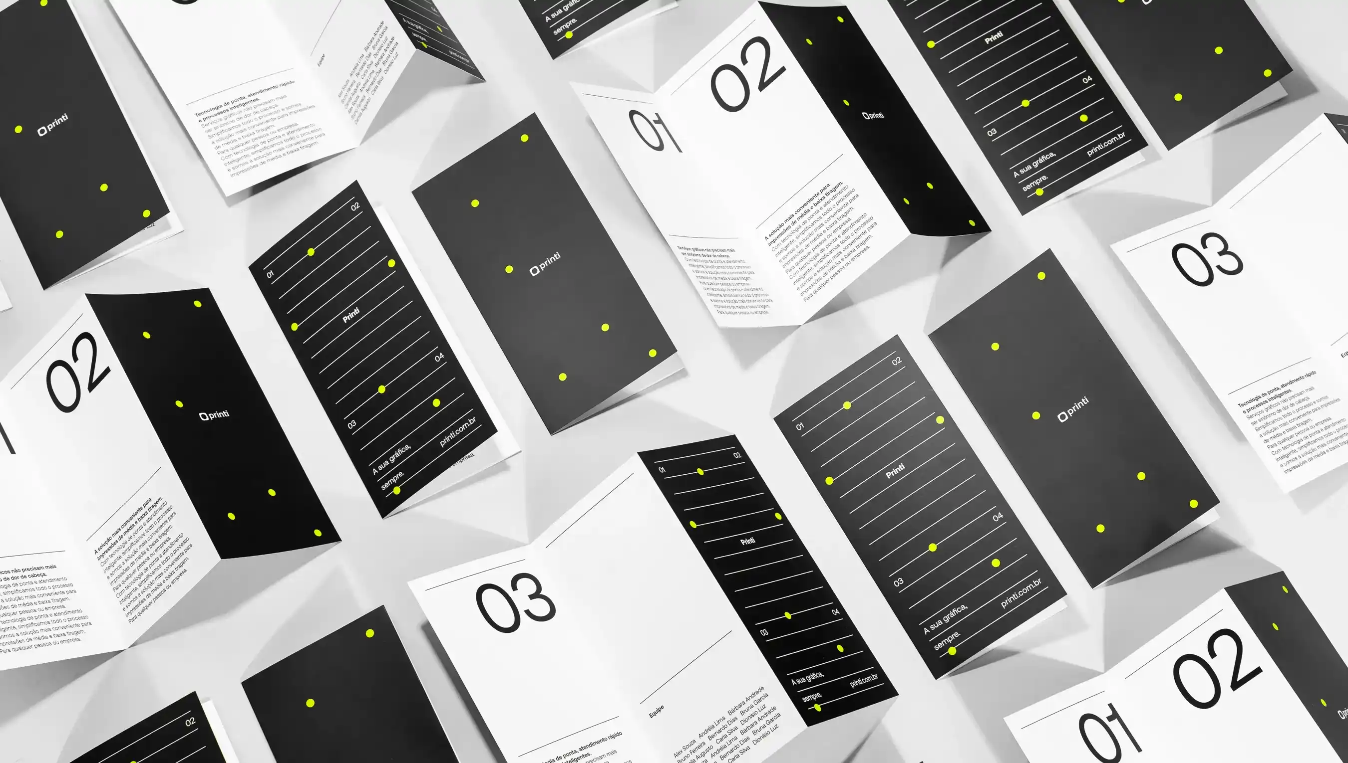 Folders com 2 dobras e acabamento verniz ideal para material promocional.
